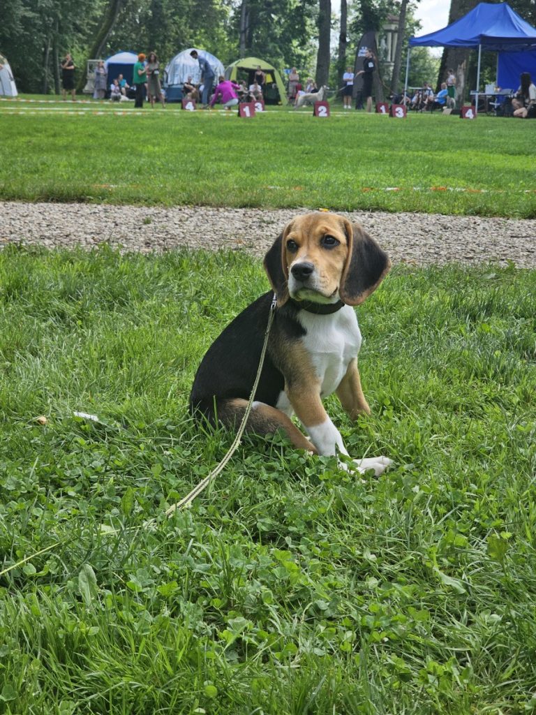 Šuniukas pasipuošęs mūsų gamybos  paminkštintu antkakliu „Šokoladas”♥