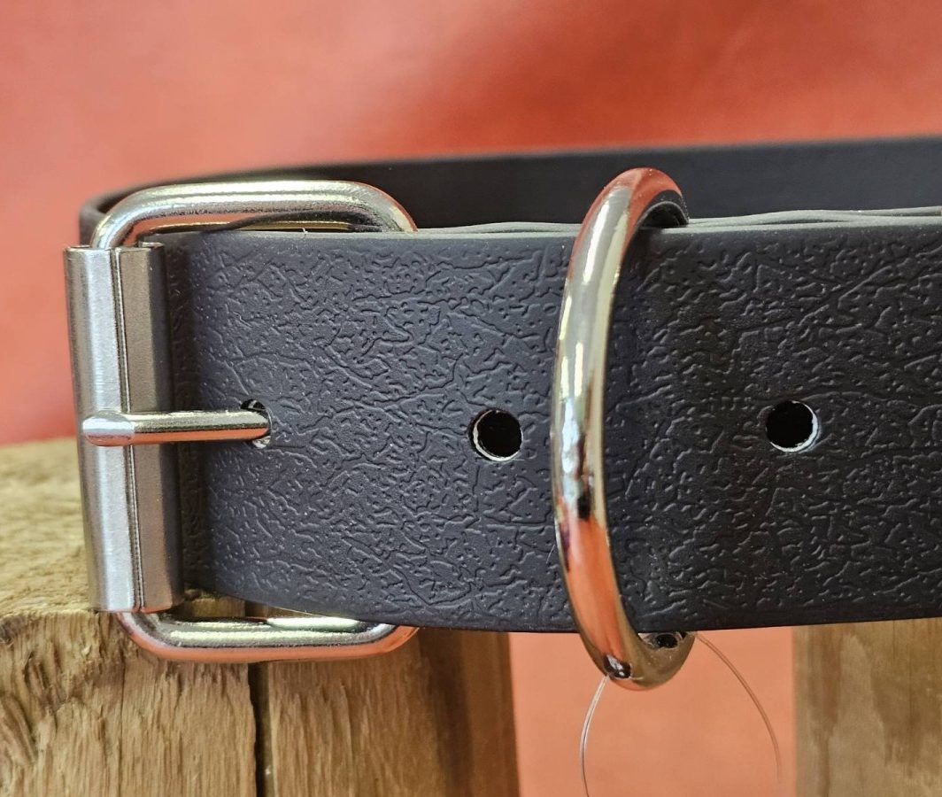 €24.00 – €35.00Price range: €24.00 through €35.00 su PVMJuodas antkaklis iš plataus polipropileno su rankena, pagamintas (kaklo apimtis 32-42 cm)