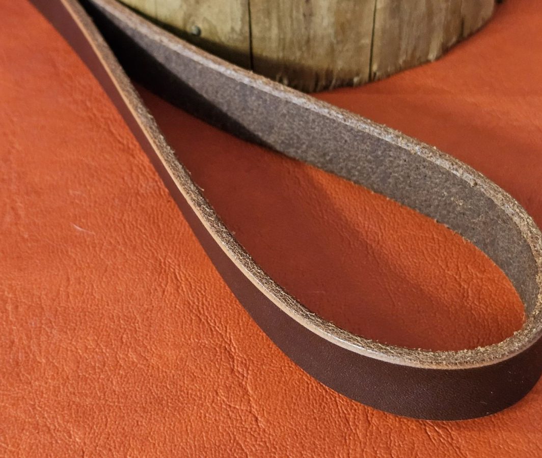 Trumpas rudas natūralios odos pavadėlis, pagamintas