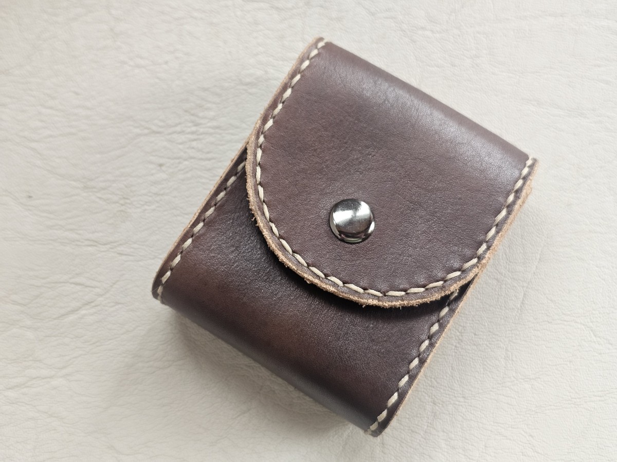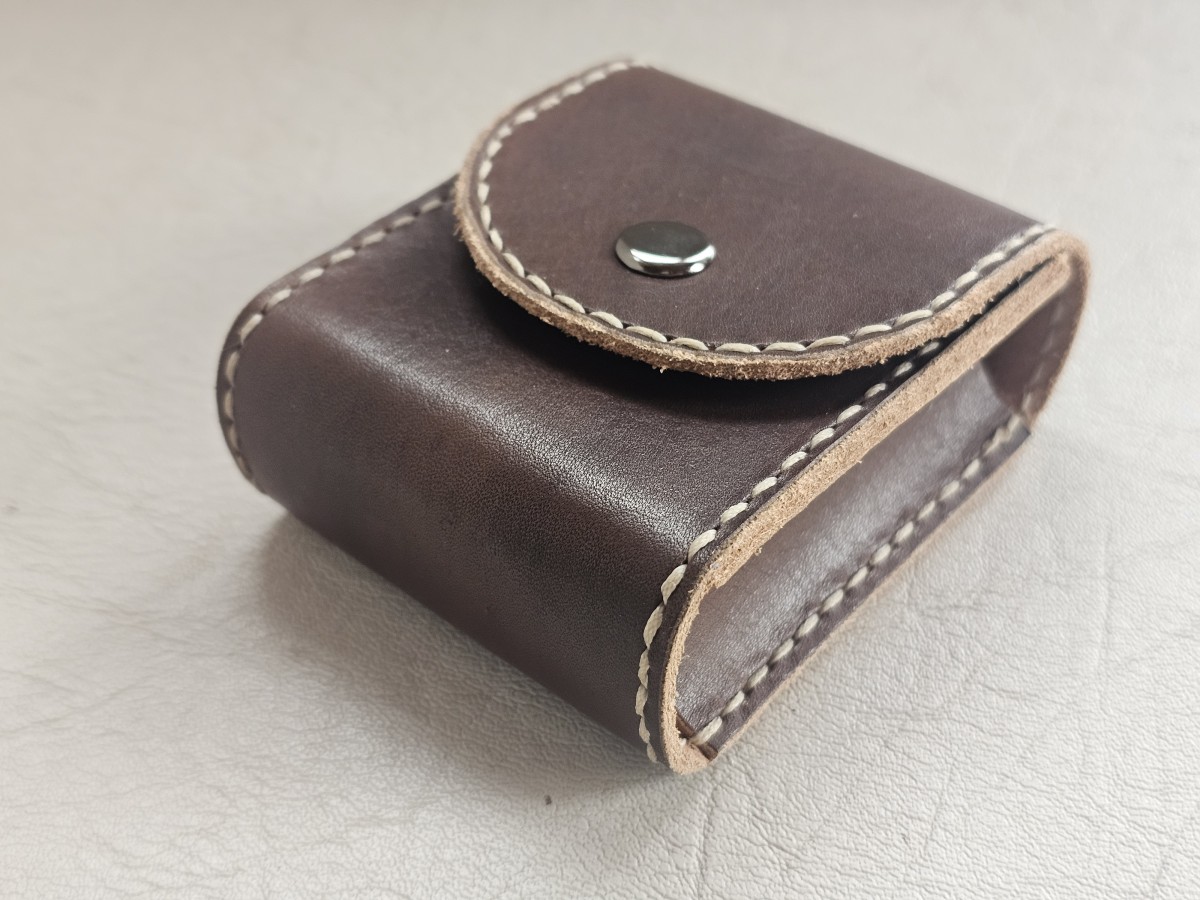 Rankų darbo natūralios odos dėklas antspaudui – tinka tokiems modeliams kaip Trodat printy 4911 ir kitiems panašių išmatavimų antspaudams.