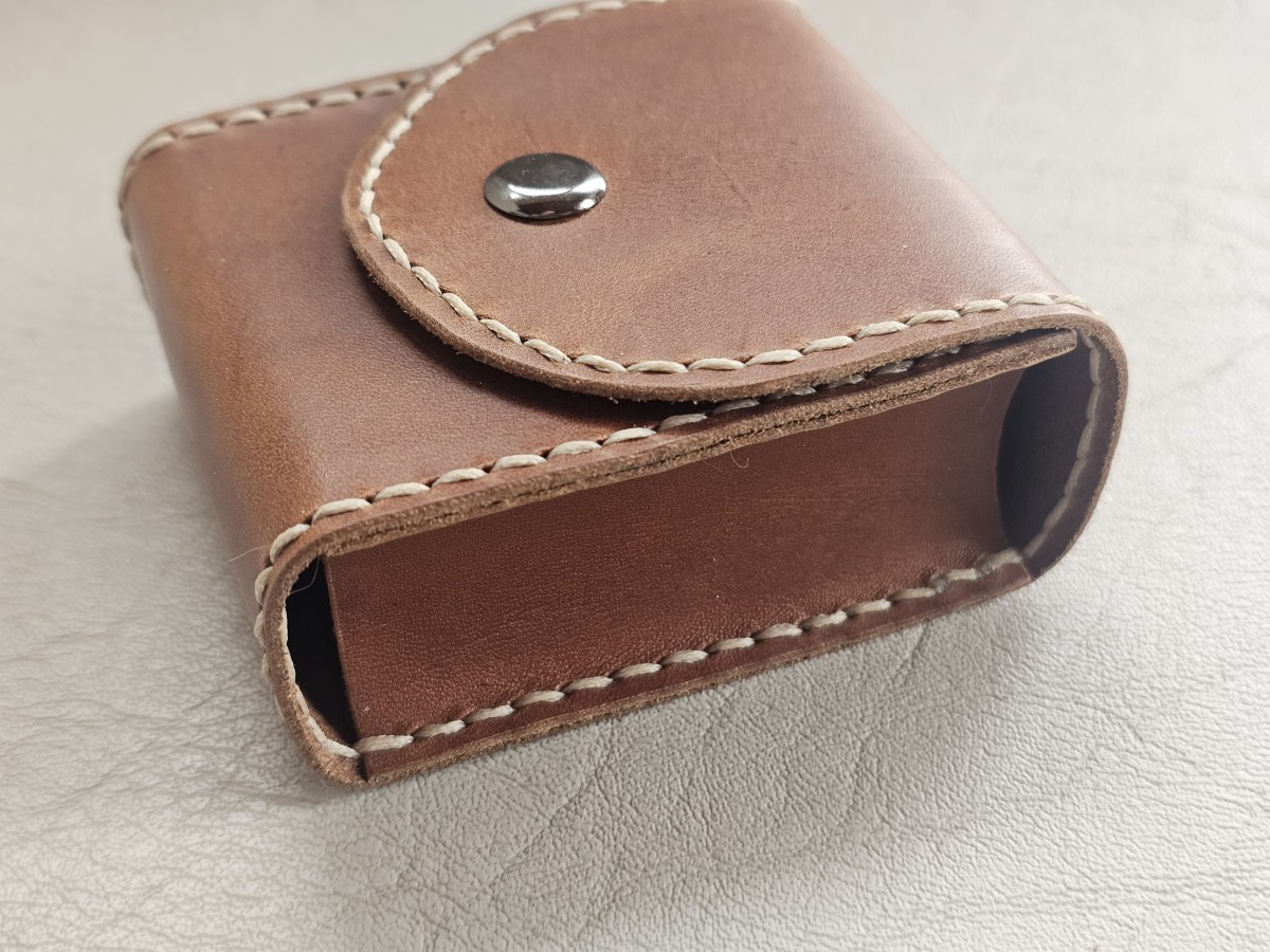 Rankų darbo natūralios odos dėklas antspaudui – tinka tokiems modeliams kaip Trodat printy 4911 ir kitiems panašių išmatavimų antspaudams.