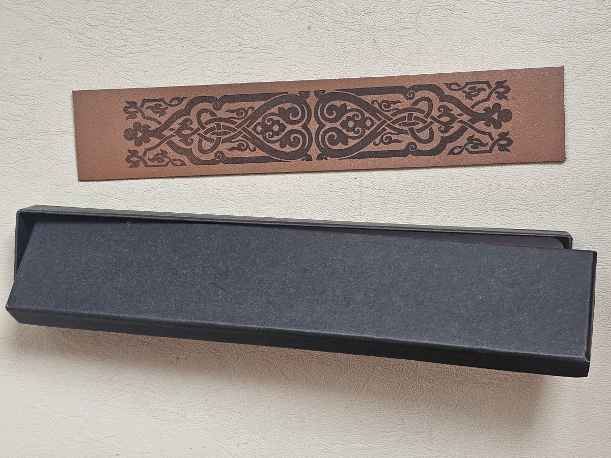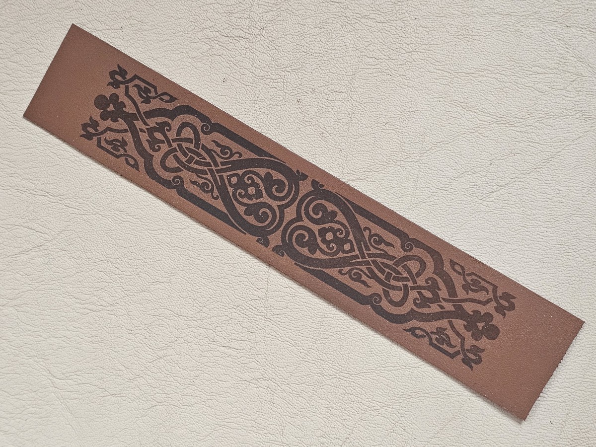 Rudas odinis skirtukas su graviruotu piešiniu