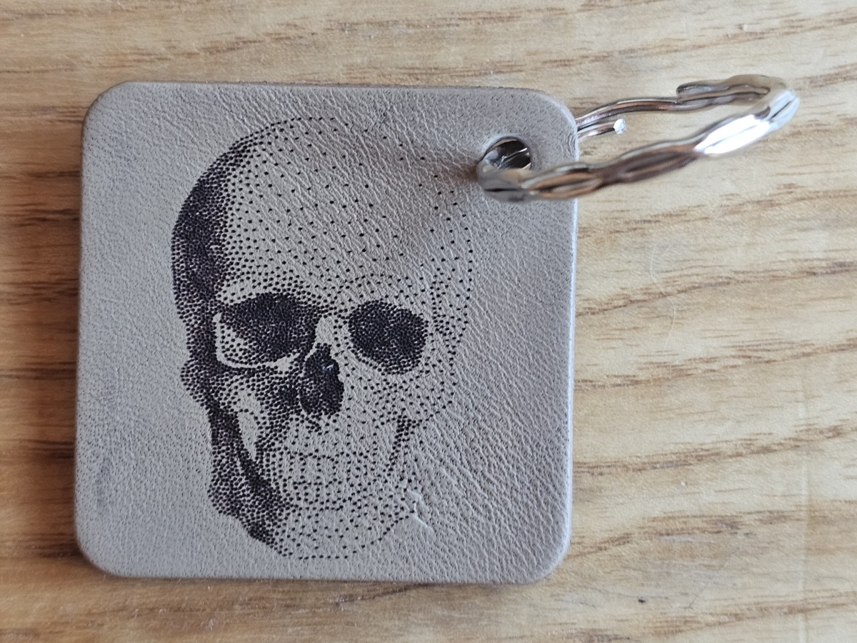 Odinis kvadratinis raktų pakabukas su graviruotu piešiniu.