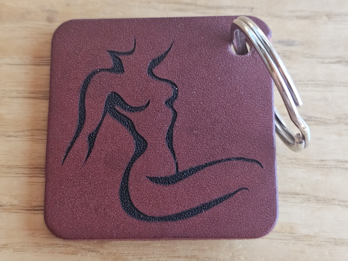 Odinis kvadratinis raktų pakabukas su graviruotu piešiniu.