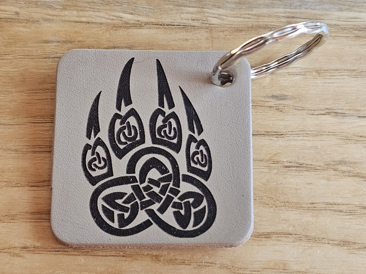 Odinis kvadratinis raktų pakabukas su graviruotu piešiniu.