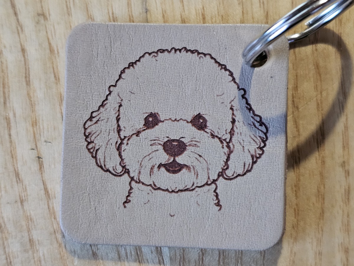 Pagamintas graviruotas raktų pakabukas iš šviesiai rudos natūralios diržinės odos.