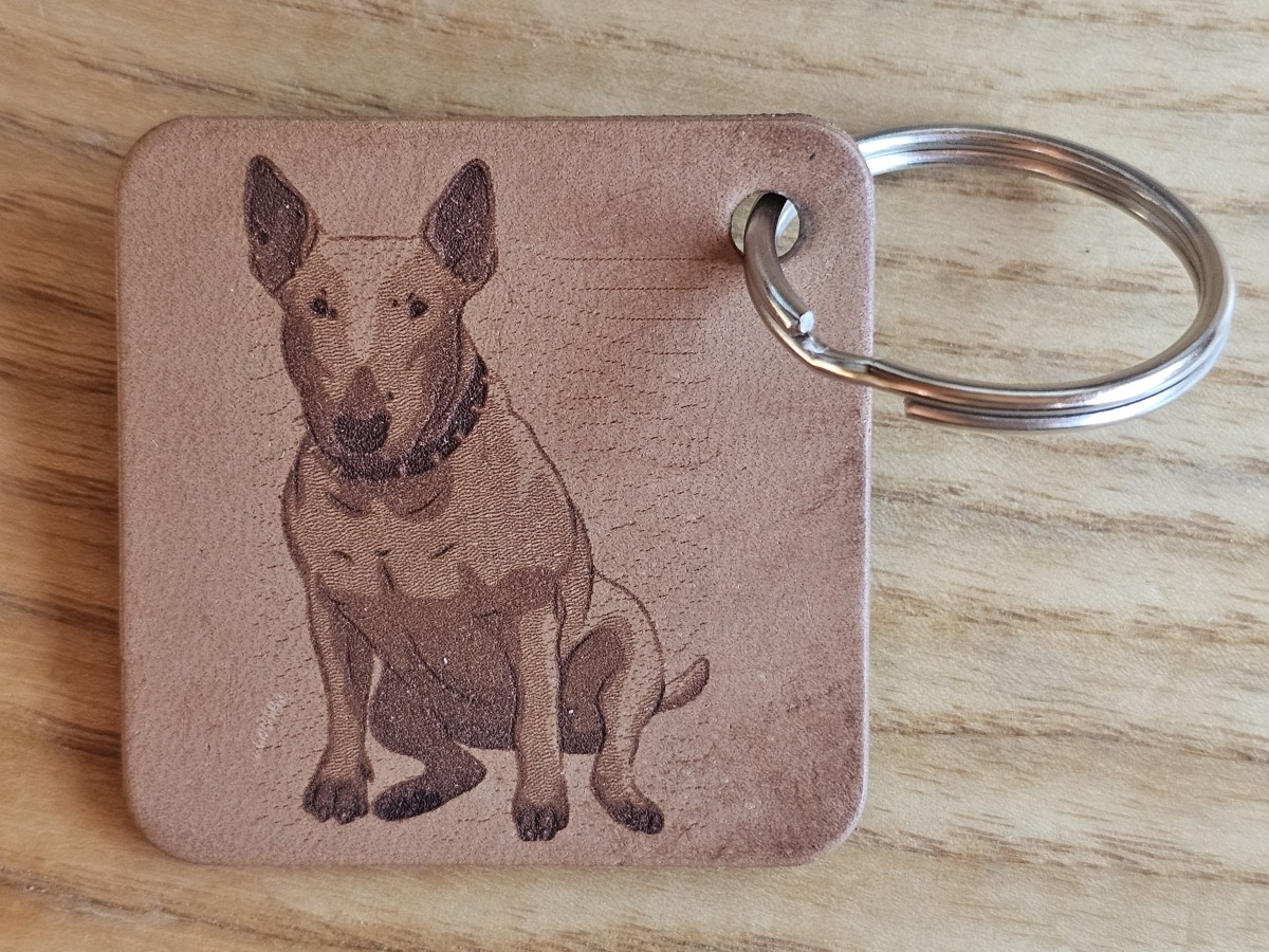 Odinis kvadratinis raktų pakabukas su graviruotu piešiniu.