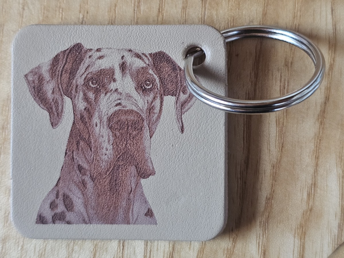 Odinis kvadratinis raktų pakabukas su graviruotu piešiniu.