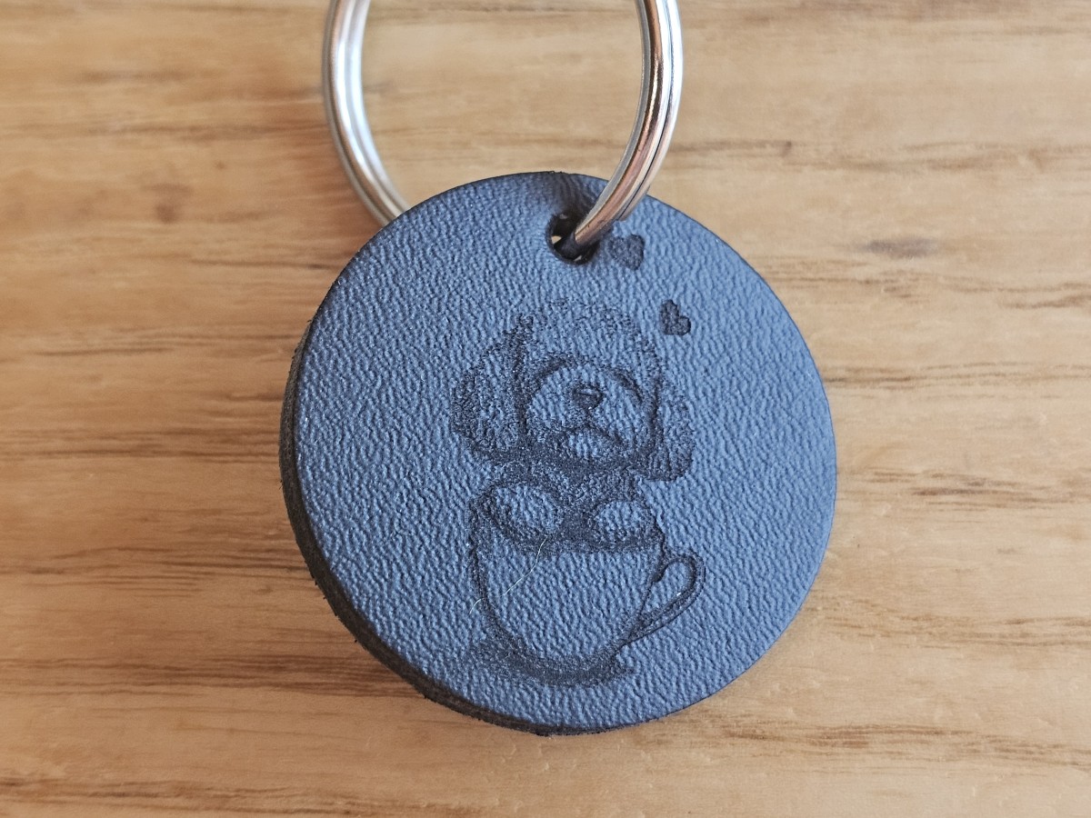 Odinis kvadratinis raktų pakabukas su graviruotu piešiniu.