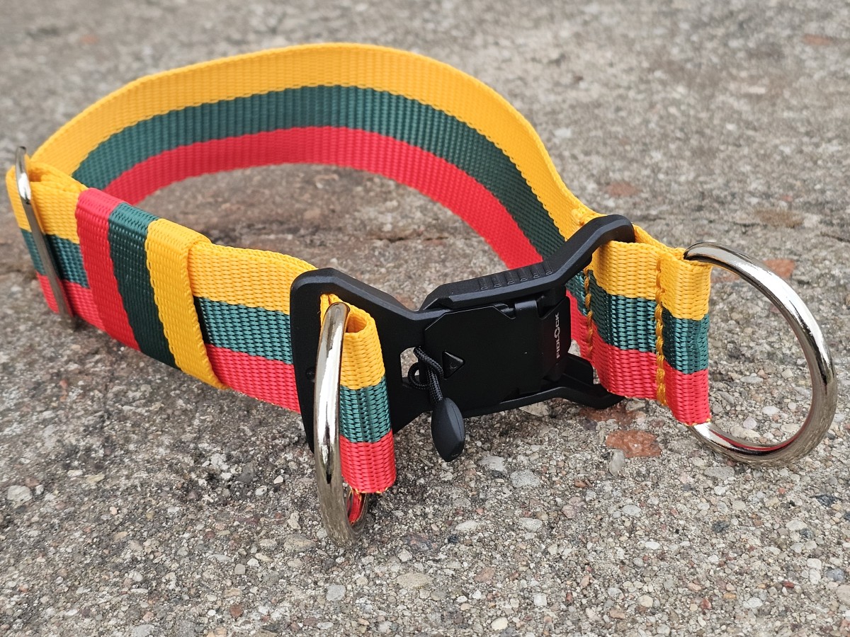 Reguliuojamas antkaklis šunims iš trispalvės austinės juostos – komfortas ir saugumas kasdien!