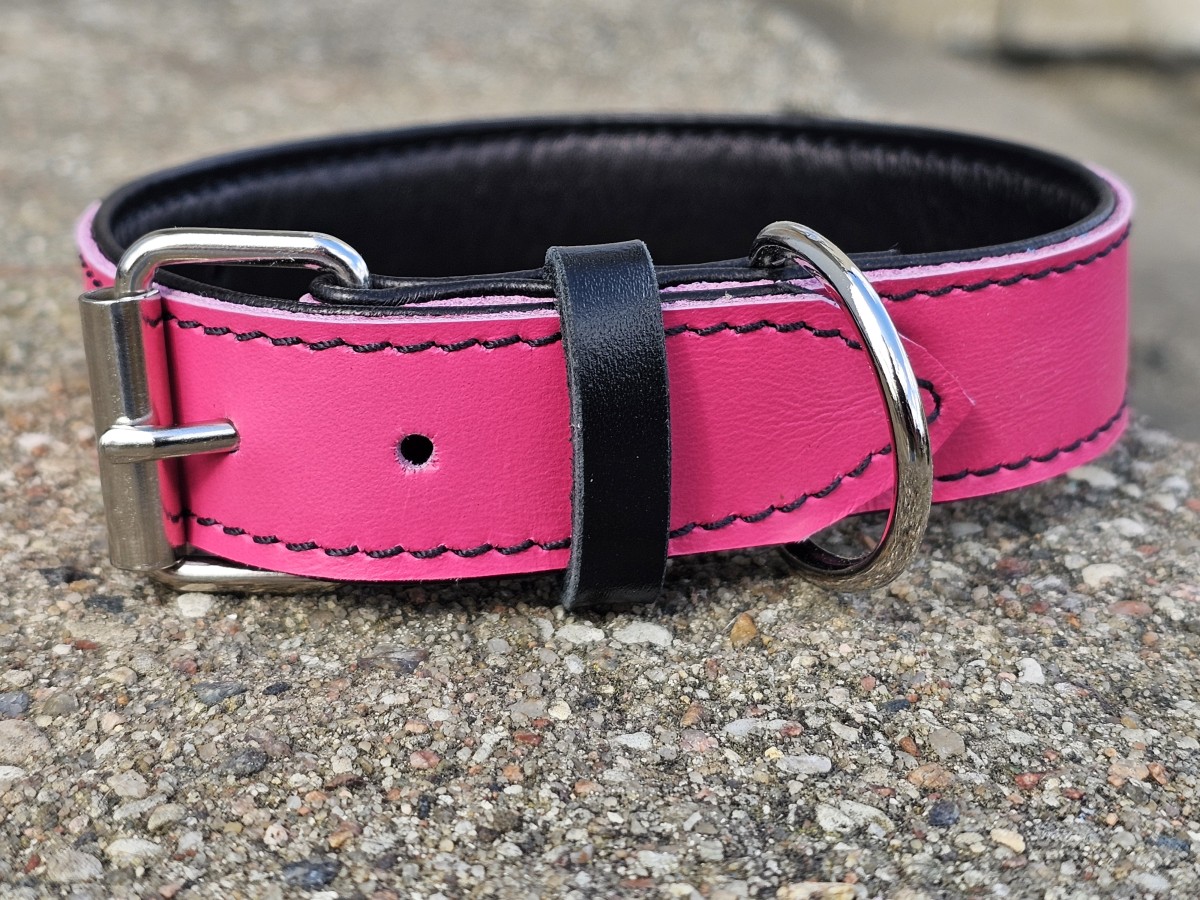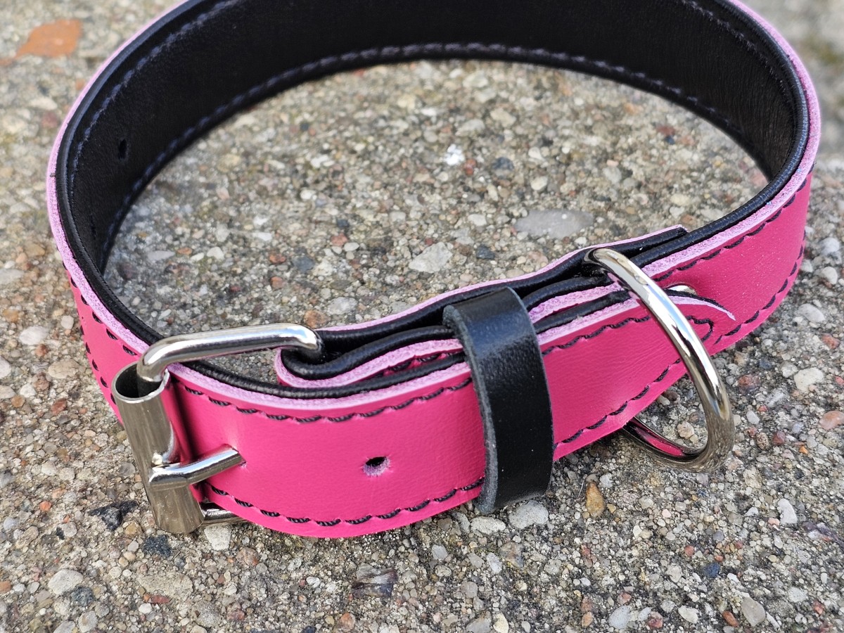 Pagamintas iš aukštos kokybės minkštos juodos odos, kuri nevelia kailio ir apsaugo jautrią kaklo odą. Viršuje – ryški kontrastinė apačiai oda.