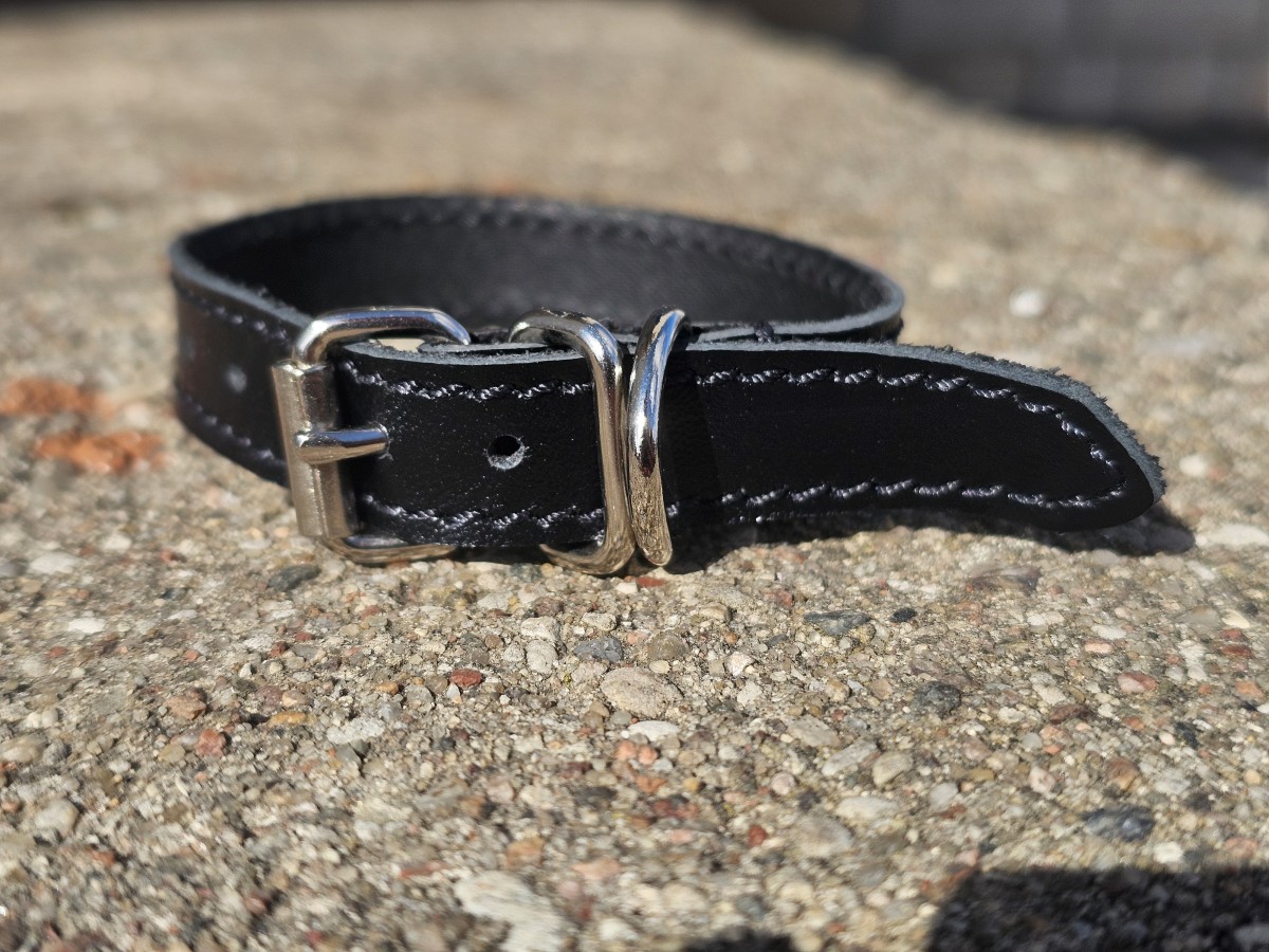 Mažas švelnus 14 mm pločio  antkaklis iš plonos  chrominio išdirbimo odo.