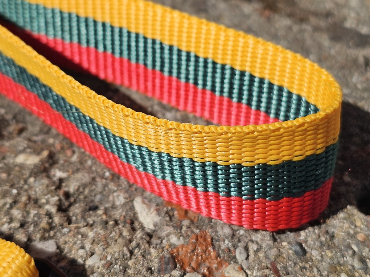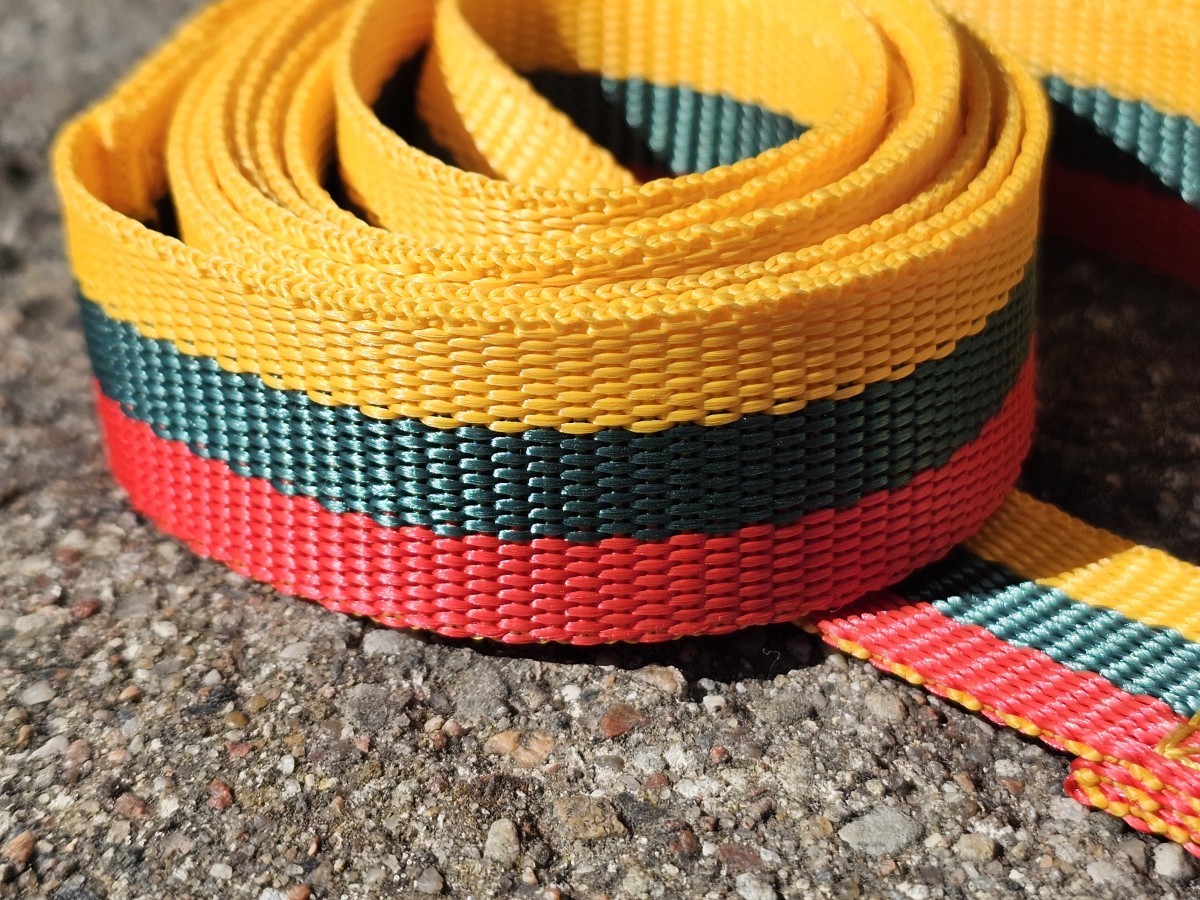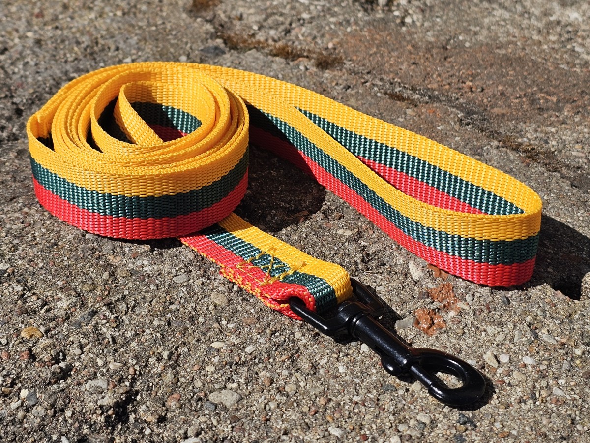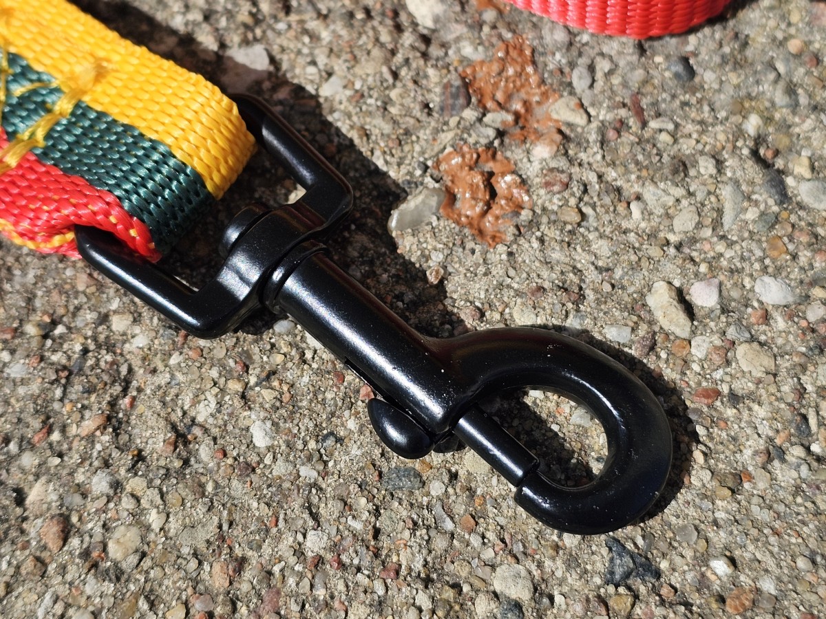 Austos juostos 2.5 cm pločio pavadėlis mažesniems ir vidutiniams šunims su pasirinktu karabinu.