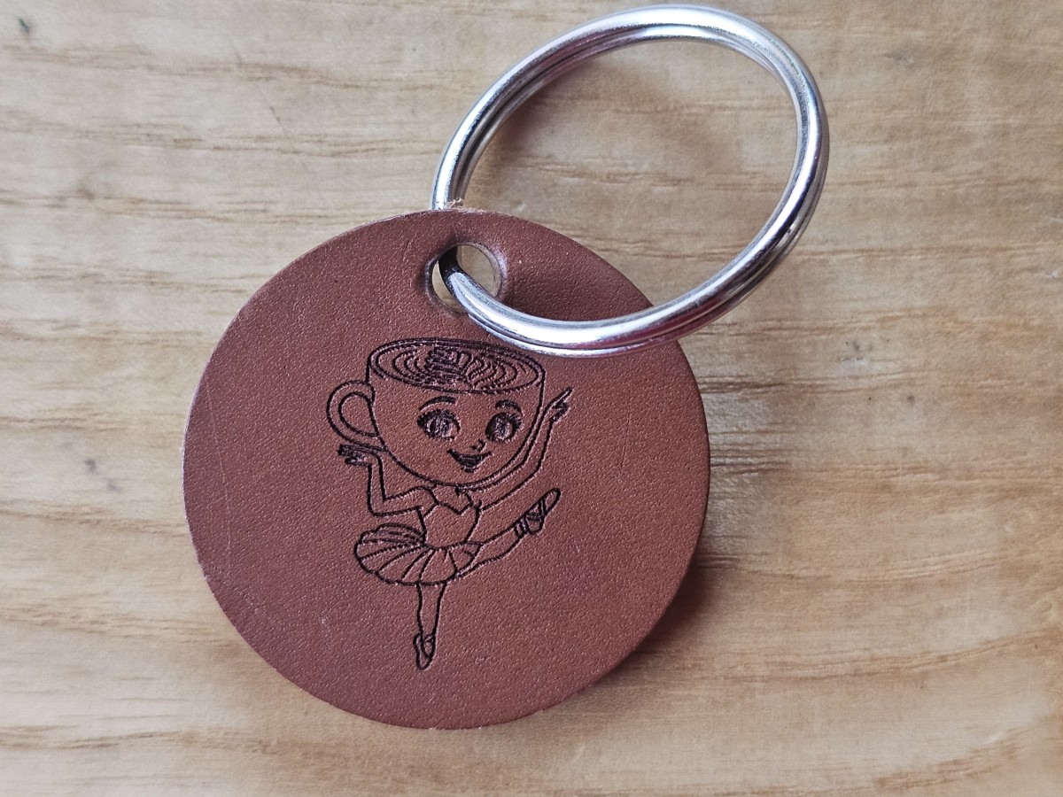 Pagamintas mažas graviruotas raktų pakabukas iš natūralios diržinės odos.