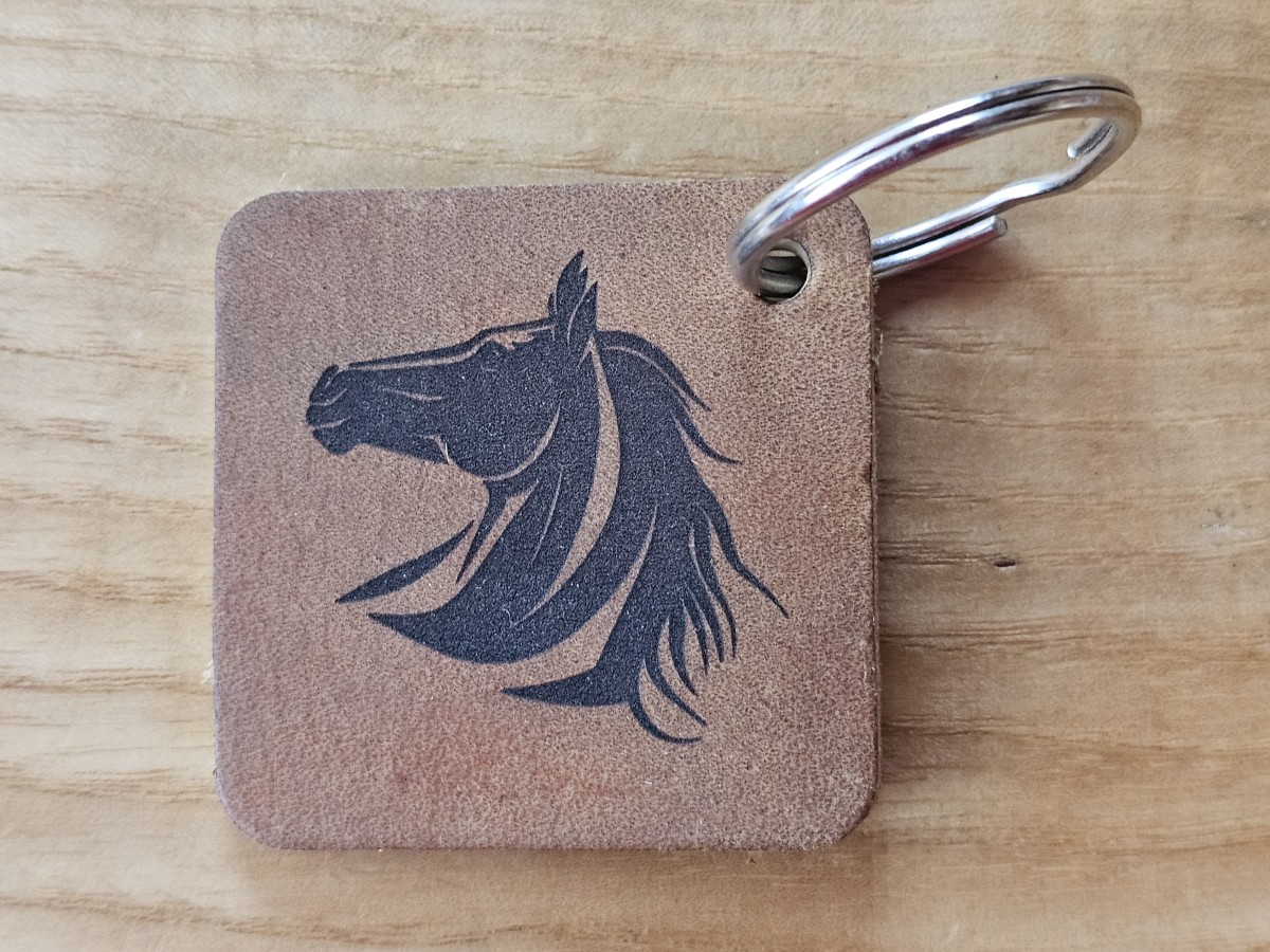 Pagamintas graviruotas raktų pakabukas iš  natūralios diržinės odos.