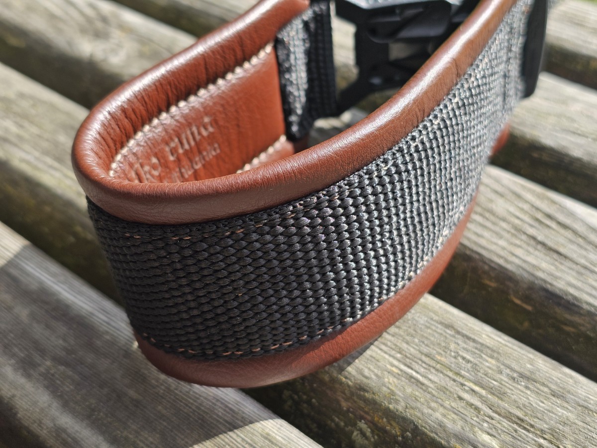 - Ergonomiškas dizainas – plačiausia vieta siekia apie 6 cm, todėl spaudimas paskirstomas tolygiai ir yra švelnus ir netraumuojantis šuns kaklui.