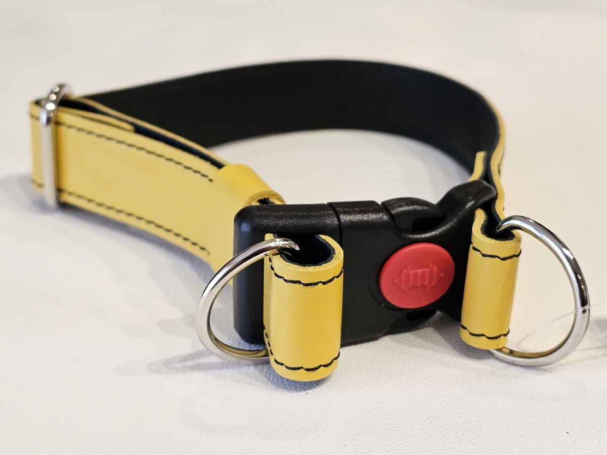 ♥ Natūrali oda – viršus iš atsparios chrominio išdirbimo odos, vidinė dalis – iš minkštos juodos odos, malonios augintinio kaklui.