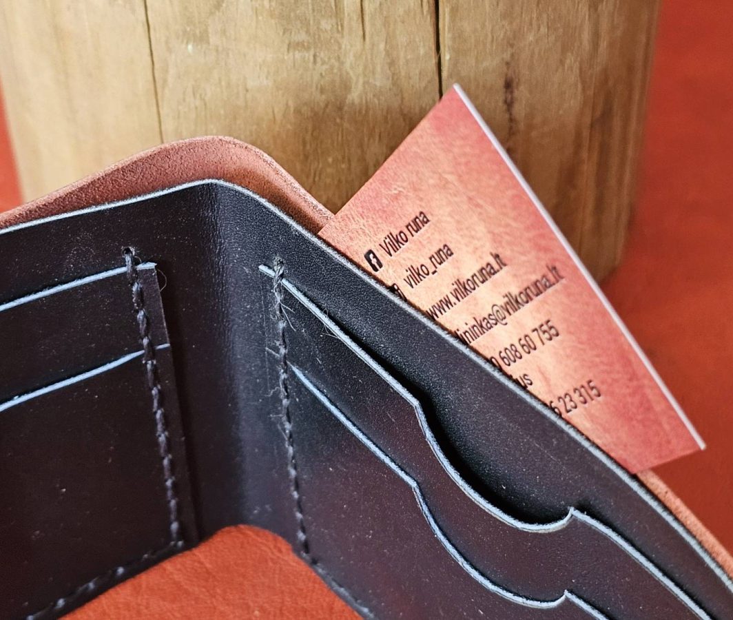 Minimalistinės piniginės be skyriaus monetoms – piniginėje yra skyrius banknotams ir keli skyriai kortelėms.