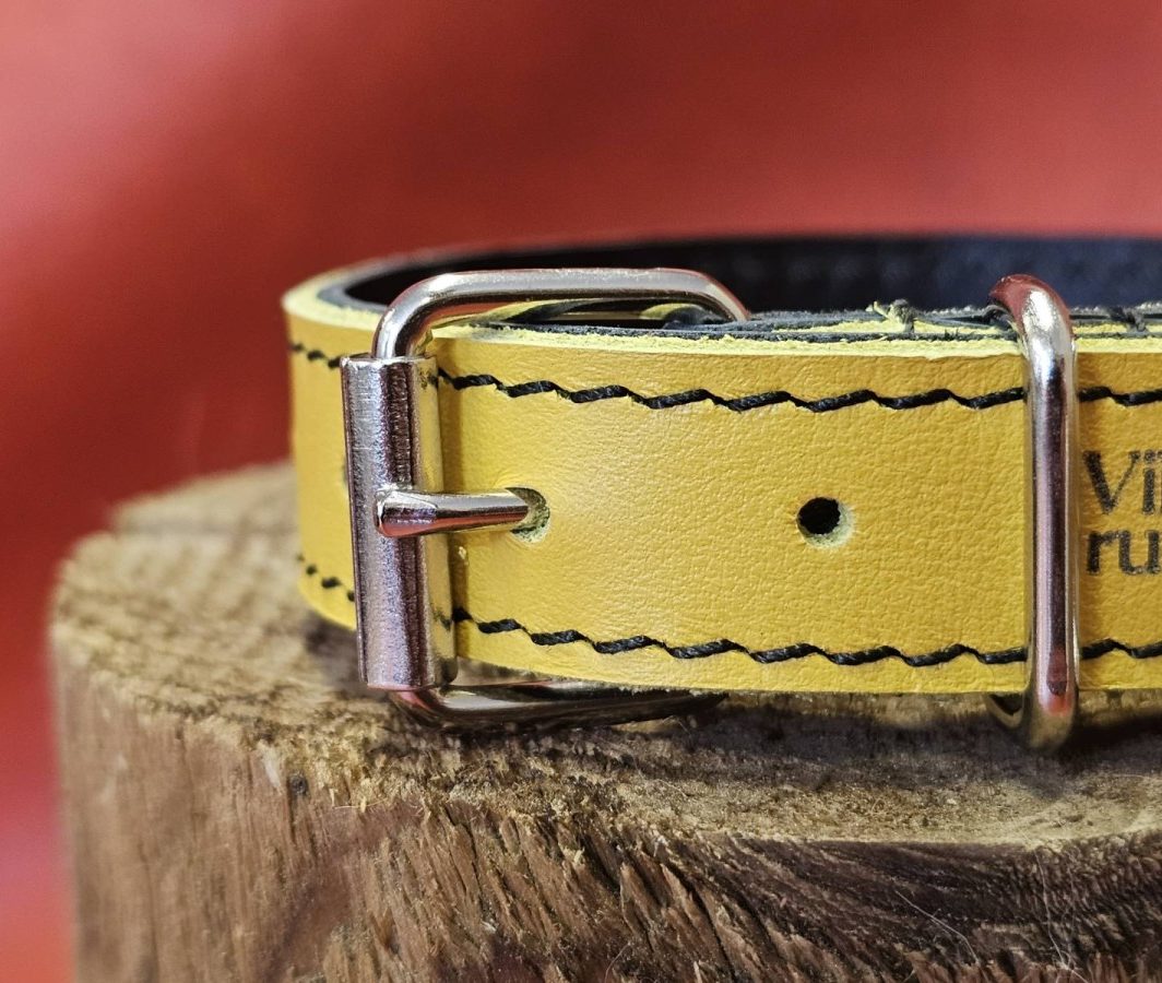 Minkšti spalvoti odiniai antkakliai augintiniams.